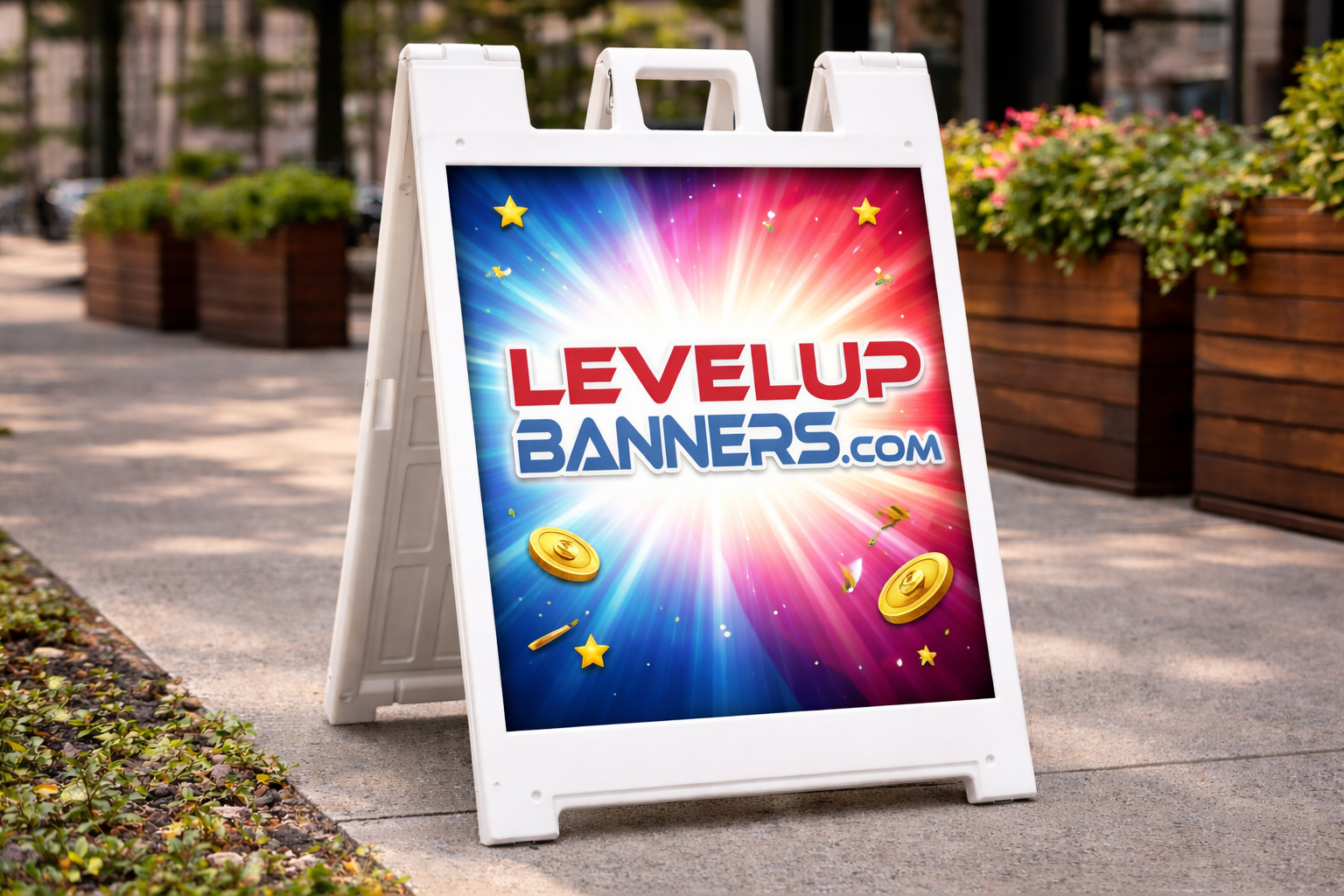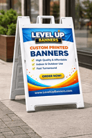 Order your custom A frame sign today from Level Up Banners and turn foot traffic into customers.