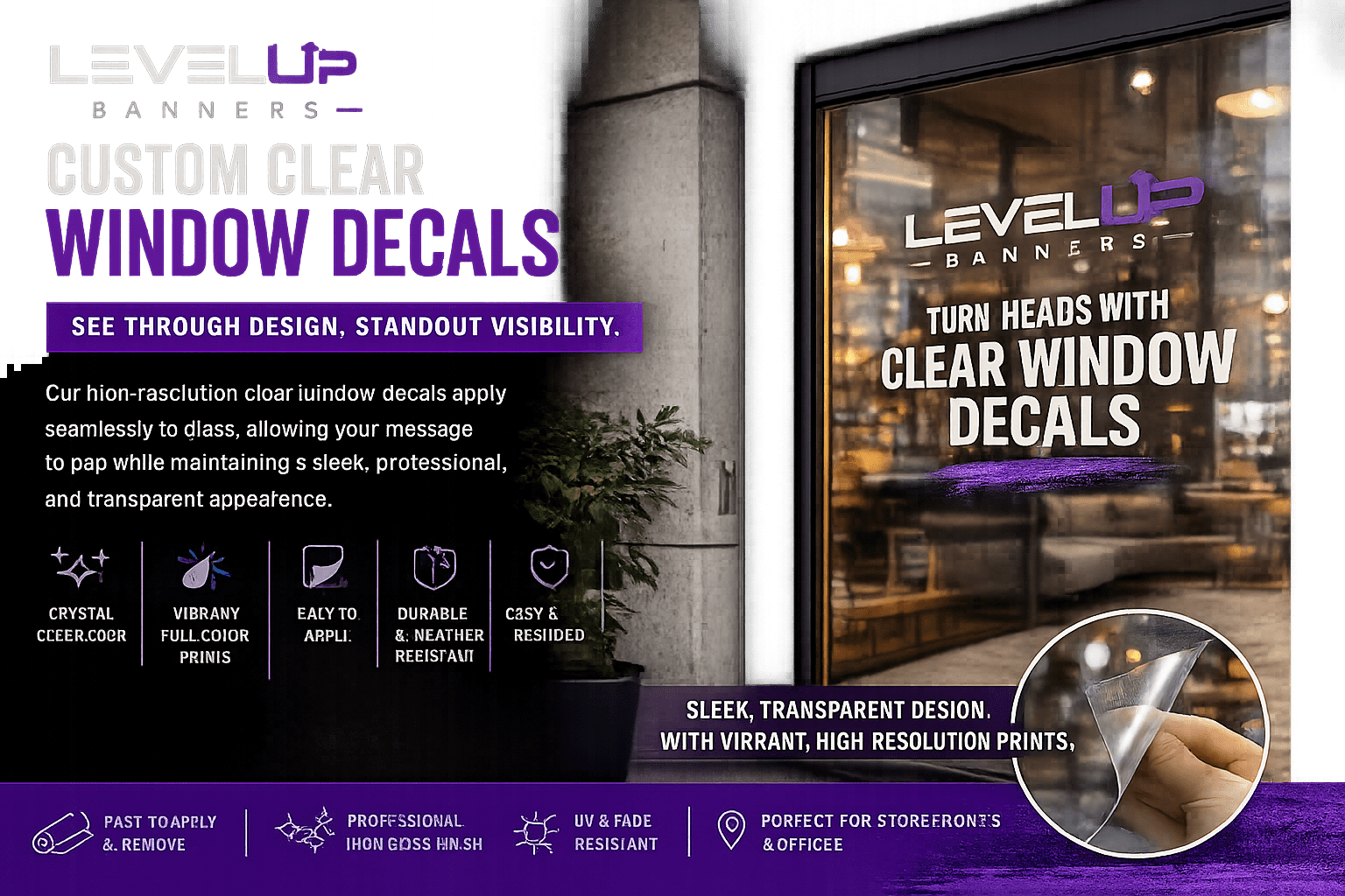 Clear window decals are one of the most effective ways to turn any storefront into high-impact, professional signage that attracts walk-in traffic and reinforces your brand. These custom vinyl graphics apply directly to your glass, creating a clean, modern look without bulky frames or hardware while still allowing natural light into your space.