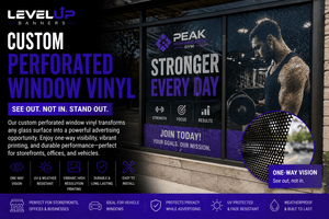 At Level Up Banners, our window perf is printed using high quality inks that deliver vibrant color and crisp detail. The material is durable, weather resistant, and designed for both short term promotions and long term installations. It helps reduce glare, add privacy, and turn plain windows into powerful marketing space.